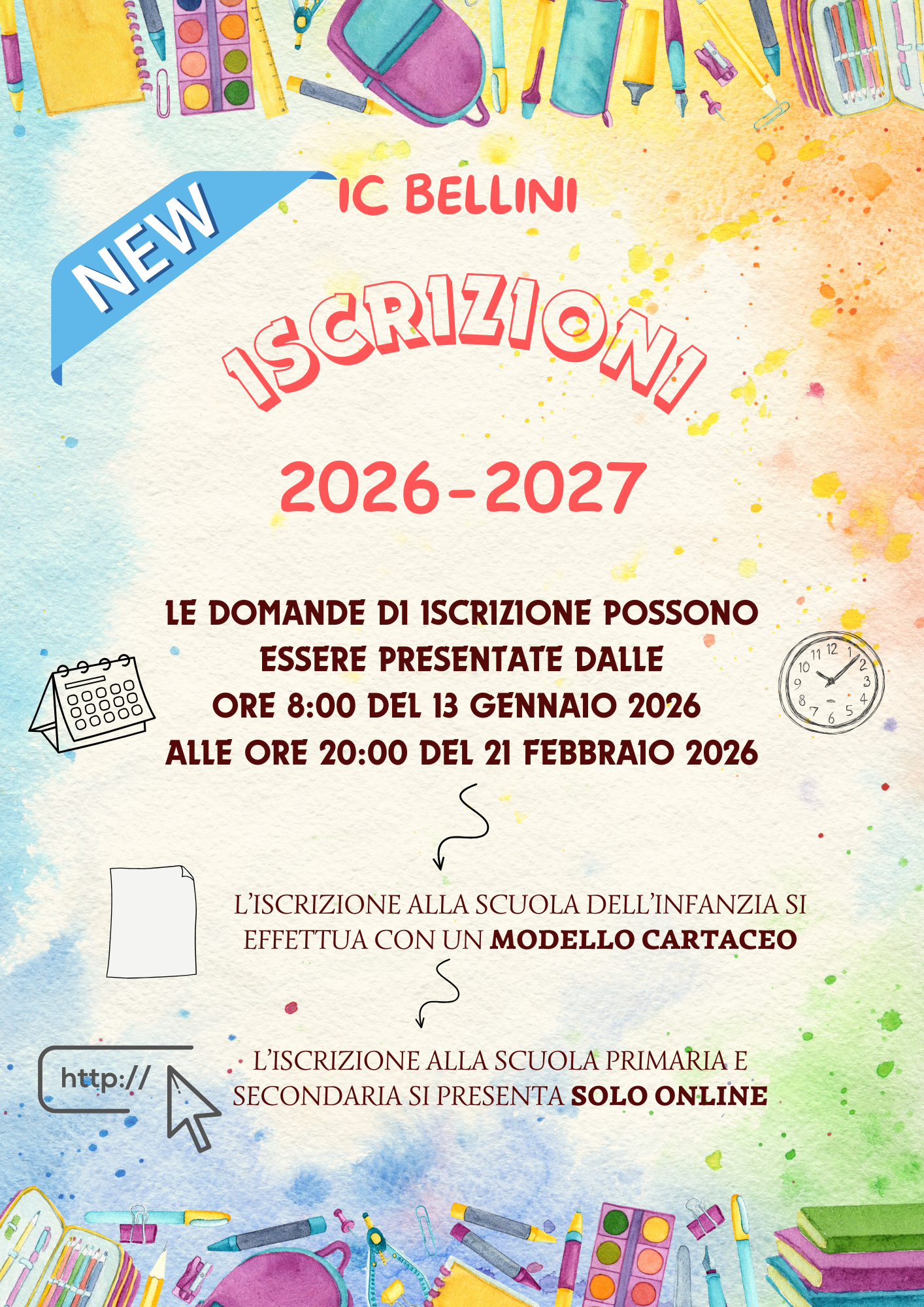 I Genitori e\o i tutori che intendono iscrivere i figli alla scuola primaria o alla scuola secondaria devono presentare la DOMANDA ESCLUSIVAMENTE ONLINE collegandosi al link: