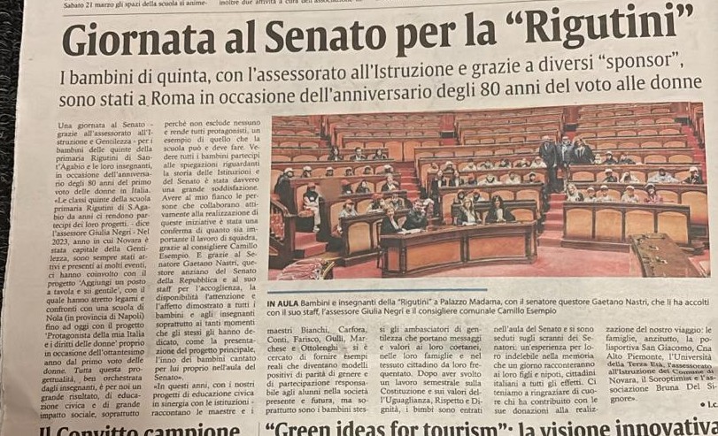 Quest'anno le classi 5A e 5B del plesso Rigutini hanno rappresentato la nostra scuola in un percorso dedicato alla cittadinanza attiva. Attraverso i progetti "Protagonista della mia Italia" e "Geina e i diritti delle donne", gli alunni hanno approfondito i temi della legalità e della parità di genere (nell’80° anniversario del voto femminile), culminando la loro esperienza con una visita istituzionale al Senato della Repubblica a Roma.